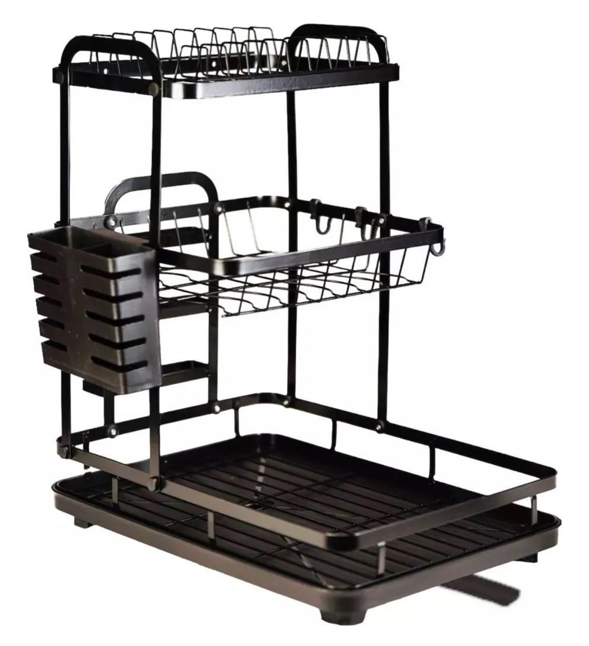 DESCRIPCIÓN:ESCURRIDOR DE PLATOS SECADOR DE LOZA 3NIVELES MJ-3042Secador de platos de mesa de 3 niveles ayudará a organizar el espacio en la cocina. Adecuado para secar platos, vasos, tazas, vasos, cucharas, tenedores y otros cubiertos. El conjunto está fabricado en metal y plástico. El agua fluye a través de la parrilla hacia una bandeja de plástico extraíble. Se puede colocar cómodamente un escurridor de platos de metal en la mesa junto al fregadero. El soporte de secado de mesa tiene un diseño sólido y duradero. CARACTERISTICAS:* Compacto, donde puedes plegar muchos dispositivos diferentes.* Diseño confiable, donde no tendrás que preocuparte por los platos.* Ahorra espacio.* Estante para platos de acero inoxidable con soporte para utensilios y bandeja de agua, escurridor de platos para mostrador de cocina.* Soporte para secar platos a prueba de herrumbre, organizador de cocina 3 niveles, blanco- negro.* La estructura del producto esta fabricada con acero y cuenta con una capa de pintura de gran acabado para prevenir que el articulo se oxide ose corroa.* Cuenta con 3 niveles desmontables, capaces de almacenar, y también incluye sus accesorios para darle un lugar apropiado a cubiertos, tabla, pinzas y demás instrumentos culinarios.ESPECIFICACIONES:* Estructura: Acero inoxidable / Plástico* Niveles: 3* Colores: BLANCO / NEGRO* Medidas: 42cmx30cm×47,5cm